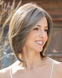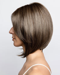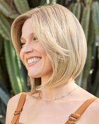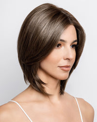 Findley from Amore Collection is a medium-length blended fiber. This straight ready-to-wear wig is a flattering collarbone bob. Findley is a classy, modern style that's easy to manage. The lace front and monofilament top provide options for parting with and without fringe. Findley is available in our newest fiber. Our NM (Natural Movement) fiber is a perfect blend of our high-quality synthetic fiber and our heat friendly fiber. This new fiber reduces the shine that is usually caused by heat friendly fiber. Please remember this is a blended fiber wig, not a heat friendly wig. Treat this fiber as our regular synthetic fiber.