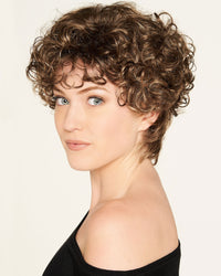 This curly wedge has a velvet front, open cap and open ear tabs. With a short curly crop, a defined nape and a light layer of bangs, the Broadway is a realistic women's wig that is easy to wear and easy to style.