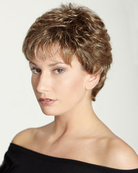 Face the day with a fresh, new perspective when you wear Rene wig. The piecey short layers create a full-bodied top, while the fringed bang sweetens things up. Front and sides are hand-tied, Super soft velvet front provides comfort but also gives a soft feel without irritation, All Special fiber Kanekalon and thin wefting provides a lightweight feel.
