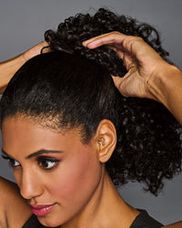 Enhance and embrace your natural texture with this super curly pony. The simple pocket attachment makes it quick and easy to go from woe to wow. Our Tru2Life? synthetic hair gives you unbelievable texture and coyly curls that look and feel like your own, minus the bad hair days.