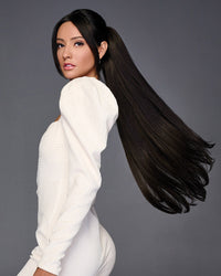 We're here for a super long pony, and this one is our new go-to. It's so easy to go from thin, short, and skimpy to full, long, and STUNNING! Get an extra-long blowout look instantly or tap into the styling versatility of our Tru2Life heat-friendly synthetic hair to add texture, curls or wild waves.