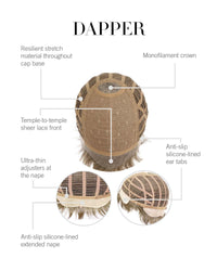 Designed with a soft textured wave, Dapper can be worn piecy and full through the top or flat ironed to be smooth and spiky. The lace front was made specifically for HIM and creates the ultimate hairline that can be styled forward or back. Cropped layering throughout the sides and back is crisp and clean for a smart, well-dressed look.