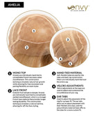 Amelia by Envy is a smart, sleek jaw-length stunning bob. This human hair wig features slight layering around the face and nape to offer a sculpted silhouette. The cap is 100% hand-tied with a Monofilament Top and lace front. These features create supremely natural comfort and movement, a natural-looking hairline, and the appearance of natural hair growth. Amelia is made of 100% human hair that allows you to style the wig with heat tools as you would your own hair. It's available in vibrant multi-dimensional colorations. The cap construction is made with built-in poly tabs and strips so that the cap can be secured for better comfort and a more confident fit.