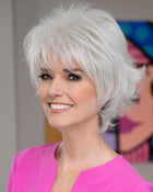 Combining rakish layering with wispy bangs, Aria's chic styling highlights your features beautifully. She will make you look and feel confident no matter the occasion. Made with Envy hair our own blend of 30% human hair and 70% heat-friendly fiber and lightweight capless construction, this wig will keep you comfortable and stylish from dawn till dusk.