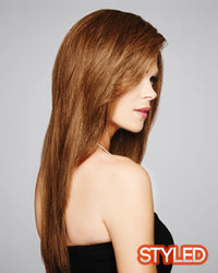 Long, softly waved layers in a luxurious length that cascades below mid-back give this breathtaking style special appeal! The Sheer Indulgence lace front monofilament top and 100% fine human hair makes for varied styling options!