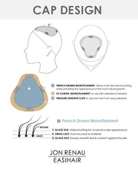 - Base Construction: Monofilament, French Drawn Top with Pu Perimeter