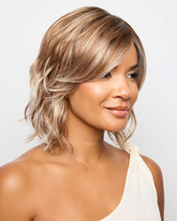 Briar from Noriko Collection is a medium-length synthetic wig. This wavy ready-to-wear wig is a soft textured chic bob. The effortless side swept fringe adds movement and flatters all face types. Its lace front will give you a natural look with the partial monofilament base. Briar's cap construction has adjustable tabs in the back nape area to allow a more comfortable fit. The result is a comfortable fit with a natural look that is both fashionable and easy to wear.