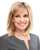 A pert long bob with bangs exemplifies no-nonsense beauty. The Smart Lace front and monofilament top provide the look of natural hair growth with easy wearability.