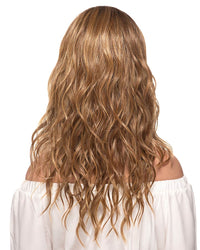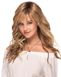 Long layers of shaped beach waves that tumble below the shoulder with feathered bangs, a smooth silky top, and a Sheer Comfort Mono Top Lace Front cap that is designed with a sheer monofilament top and lace front for an undetectable hairline and all day, every-day comfort.