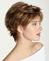 Frisco can be flipped up or down at the back with short straight layered hair at the top. A mono cap construction allows realism and comfort. Effortless beauty and versatile styling with the appearance of hair growth from a natural looking scalp. Easy care and wear in silky soft synthetic hair fiber combines with a lightweight design. Perfect for women with hair loss.
