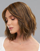 Hollie is casual sophistication. With a short shoulder length and subtle, natural wave, Hollie gives effortless charm. Trending bangs and high heat fiber ensure versatility, while low Perma tease provide a natural appearance. Hollie is your everyday essential for understated elegance.