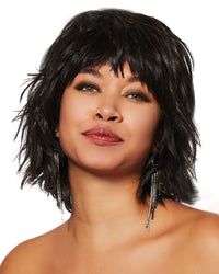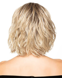 Long mid-length layered bob with feathered bangs, a smooth silky top, textured layers that fall below the collar, and sheer comfort mesh top and lace front for an undetectable hairline and all-day, every-day comfort.
