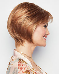 This classic chin-length page combines the natural looking hairline of a Sheer Indulgence lace front monofilament top for optional off-the-face styling with the cool, light comfort of a 100% hand-knotted base.-Velvet ear tabs, Velvet Nape