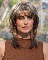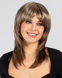 Miranda is a mid-length shag wig with layers for added texture and volume, creating a soft body. This wavy style is incredibly flattering. An open cap design offers full coverage while feeling light and cool. The cap molds to your head shape, ensuring this shoulder-length wig fits perfectly.