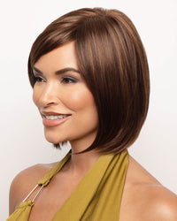Wynn from Noriko Collection is a short-length synthetic wig. This straight ready-to-wear wig is a chin-length bob. This smooth textured layers with feminine bangs create an impeccable standard style. Its lace front will give you a natural look with the partial monofilament base. Wynn's cap construction has adjustable tabs in the back nape area to allow a more comfortable fit. The result is a comfortable fit with a natural look that is both fashionable and easy to wear.