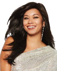 Nothing says glamour more than a long, natural silhouette that is perfectly layered and enhanced with soft wave. Subtle but distinct drama makes Ashlyn a model perfect style. A long cascading layers wig, Ashlyn is striking, feminine and face framing. The beauty of this ready-to-wear synthetic hair style with an off center part, keeps things very real. Comfort of a capless construction allows airy ventilated wear. A confident look with flowing movement worn tamed or tousled.