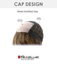 A geometric blunt cut with perfectly placed bangs. A bob back that tapers at the nape and our custom fitting Sheer Comfort cap with a sculpted lace front and a soft mesh monofilament top for an undetectable hairline that delivers all-day comfort.