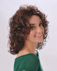 Fun, feminine, soft flowing layered curls in a great medium length.