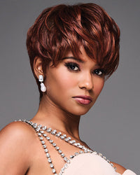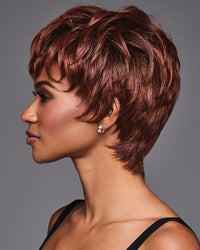 Lights, camera, action! JADA brings all the seductive style of a brazen Bond girl to this sexy boycut. She's a short, wavy crop with a longer front and a monofilament top for sweeping movement that can be brushed forward or with a sophisticated side part.