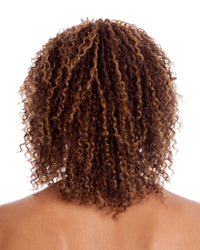 Shoulder length layered spiral curl 14" with bangs and center skin part