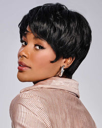 Feel like anything is possible whenever you wear this short, wavy, boycut crop. The longer front can be brushed forward and heat-smoothed for an elevated styling option. Named after the Swahili word for "purpose", NIA is a testament to the confidence of those who wear it.