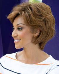 Aubrey by Envy features the latest in heat friendly fiber with its unique blend of 30% human hair and 70% synthetic fiber.