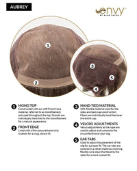 Aubrey is constructed with mono top and Hand-Tied Sides and back. With our Hand-Tied features through-out, you never need worry that anyone will know that you have anything but fabulous hair!