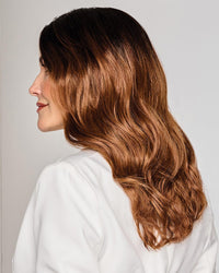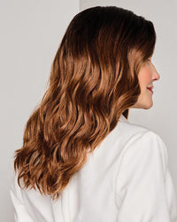 Loose, tumbled beach waves are an ideal canvas for our new ombre shades. Today's trending color treatment features an extended rooted area with depth at the crown and a gradual transition to lighter tips around the face. Beautifully highlighted long layers enhance this A-line look from its lower density top to the fuller, textured weight at the bottom.
