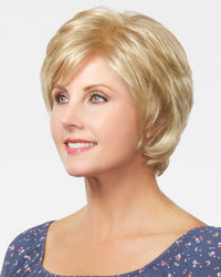 Renee, offers subtle curls, layers, and sassy volume when styled up. Renee features a monofilament top with a lace front. Brush flat, if desired, for a more refined and sophisticated look!