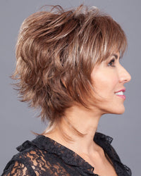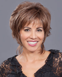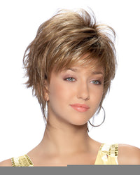 Short, simple and chic! Feathery layers and a fashionably progressive finish in the nape area give this cut its runway appeal. Ready-to-wear effortless finger styled. A capless construction of open wefts along inSides of cap provides delightful airy lightweight wear. Adjusters at the nape and bendable ear tabs offer comfort and security in fit.