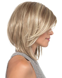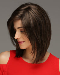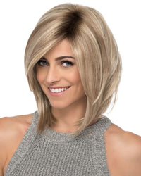 Sky's not a traditional lob. This look is both sexy and chic; the perfect amount of versatility all in one style. Her slightly angled layers and flowing side bangs make this shoulder length style simple and sleek for a perfect evening.