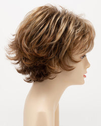 Tapered neckline and swirling waves of soft curls offer a completely wearable style.