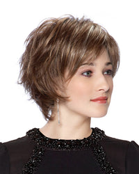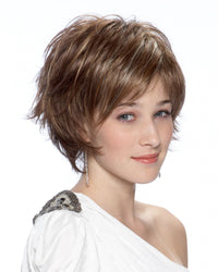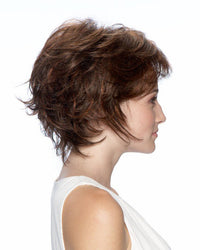 This flattering shaggy bob compliments the face with a cavalcade of wispy disconnections and volume. A razor-finished silhouette gives additional movement to this short textured style. An open capless wig construction of thin spaced wefts make up the inSides of cap, providing airy lightweight ventilation. A style worn casual or dressed up, it provides a gorgeous and easy way to update your look without the fuss.