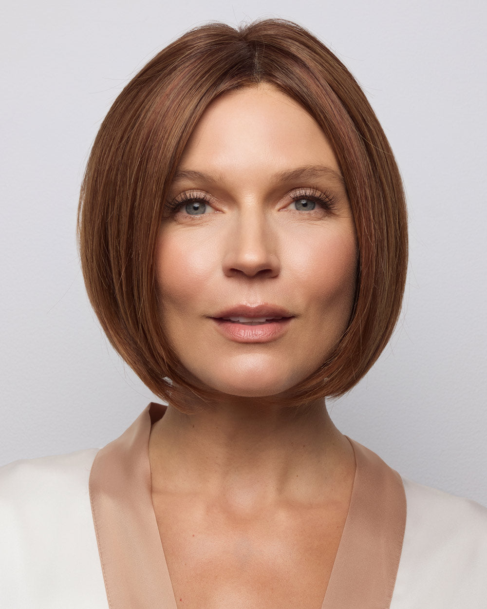Ayumi from Noriko Collection is a short-length blended fiber wig. This straight, ready-to-wear bob features a chic center part and a softly graduated shape that frames the neckline with elegance. Long, invisible face-framing layers and medium density create a polished yet versatile style, perfect for everyday wear or special occasions. Available in our NM (Natural Movement) fiber, a high-quality blend of synthetic and heat-friendly fibers that reduces shine while maintaining a natural look. Ayumi is designed with an extended lace front and soft lace part for a natural appearance, with adjustable tabs in the back-nape area for a secure and comfortable fit. The result is a stylish, natural-looking wig that is easy to wear.