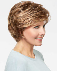 Carly is a beautiful short silhouette with a soft texture throughout the top and sides. Finger tousle for volume or style down for a sleeker look. Carly is machine made featuring a feather-light cap construction with ultra-thin waftings for a lightweight comfortable fit. Longer layers on top and around the face make Carly extremely versatile.