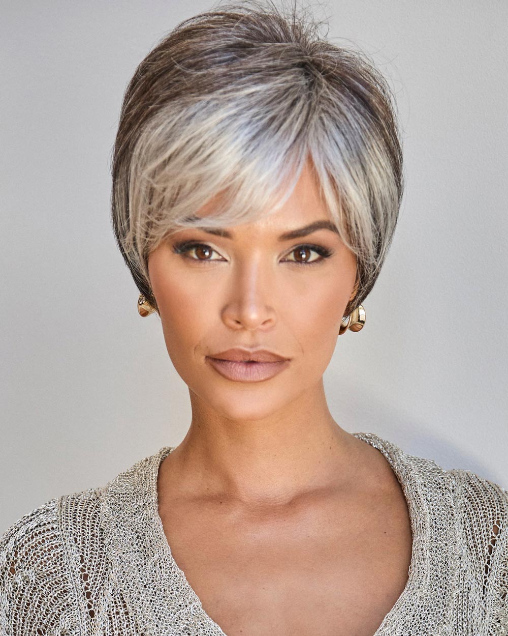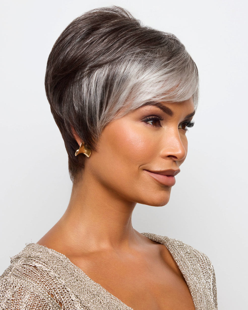 Modern swept fringe and a tapered nape unite in creating this poised pixie.