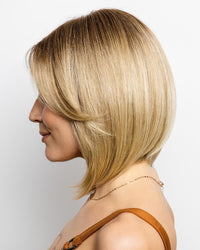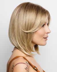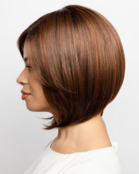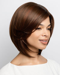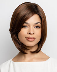 Findley from Amore Collection is a medium-length blended fiber. This straight ready-to-wear wig is a flattering collarbone bob. Findley is a classy, modern style that's easy to manage. The lace front and monofilament top provide options for parting with and without fringe. Findley is available in our newest fiber. Our NM (Natural Movement) fiber is a perfect blend of our high-quality synthetic fiber and our heat friendly fiber. This new fiber reduces the shine that is usually caused by heat friendly fiber. Please remember this is a blended fiber wig, not a heat friendly wig. Treat this fiber as our regular synthetic fiber.