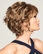 A no-fuss style that reflects the latest natural curl trend, FRESH CHIC's textured curl is a stacked bob that looks modern and fresh. A soft, razor-cut fringe adds a gentle accent to shape the face and highlight the eyes. The lace front monofilament part allows for added styling options. .