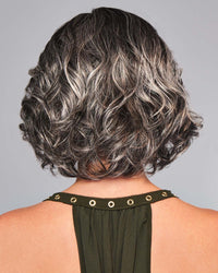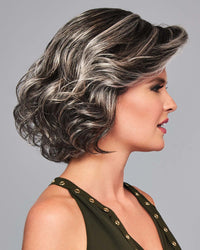All over, softly waved layers define this collar length wavy bob. The lace front monofilament part allows for off-the-face styling options