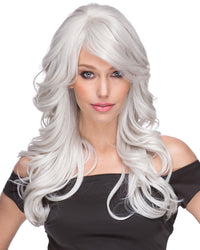 Long loose wavy with slant bang. It's supermodel runway hair, but without all the effort. Just slip it on, lightly style and strut out the door knowing you have head turning glamorous hair. This wig is also heat friendly, meaning you can restyle, straighten and curl your hair with ease!