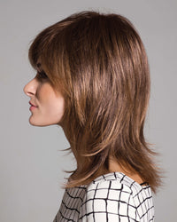 Feathery, out-flipped layers lend a "retro" finish to this shoulder length cut.