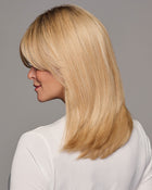 This long, lightly layered style gives you the look of a beautiful salon blowout. Wispy bangs can be styled to the side or separated into curtain bangs. The longer length suits any age - and it's versatile too. Easily pull into an updo or clip the bangs to one side.