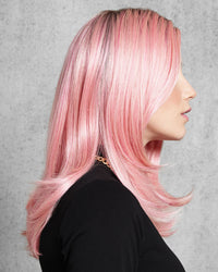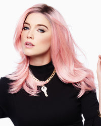 We can't promise you won't stand out with this pop of pink. These classic layers are anything but ordinary. The dark root adds contrast and makes it look like you spent hours in the salon chair. The Tru2Life Heat-friendly synthetic fiber can be styled curly or even completely straight. With a comfortable cap design you can wear it for a night out or even all day. Pinky Promise will have you lying about who did your hair color.