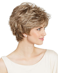 Rock and Roll..Roxy is layered and relaxed with a quick transition to tousled finger waves down to the nape and a fringed Bangs with a lot of movement. Mixed Modern style that is a shorter cousin of our Best Selling Kenzie.