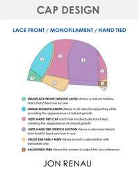 Gorgeous wavy curls never fail to impress! This wig's hand-tied monofilament cap and Smart Lace front look supremely natural and offer endless styling options to the front hairline.