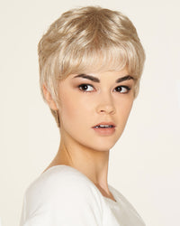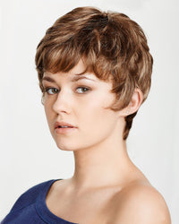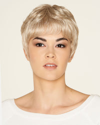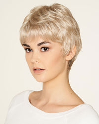 Terri II is a short synthetic boy cut with soft curls and feature of a mono cap construction for greater realism. Hand-tied hair a smooth skin see through mesh base at the top of the cap, for a natural looking scalp and simulation of actual hair growth. Hair parting options and maximum styling versatility define this classic look. The sides and back at inside of cap features open wefts for airy wear.