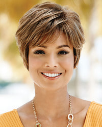 Softly feathered waves are carefully sculpted to lengths that can be worn smooth or full. A feminine style that isn't shy about showing off its lovely nape-hugging neck.