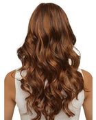 The long layered curl pattern is more relaxed at the crown and tighter toward the bottom for a modern silhouette.